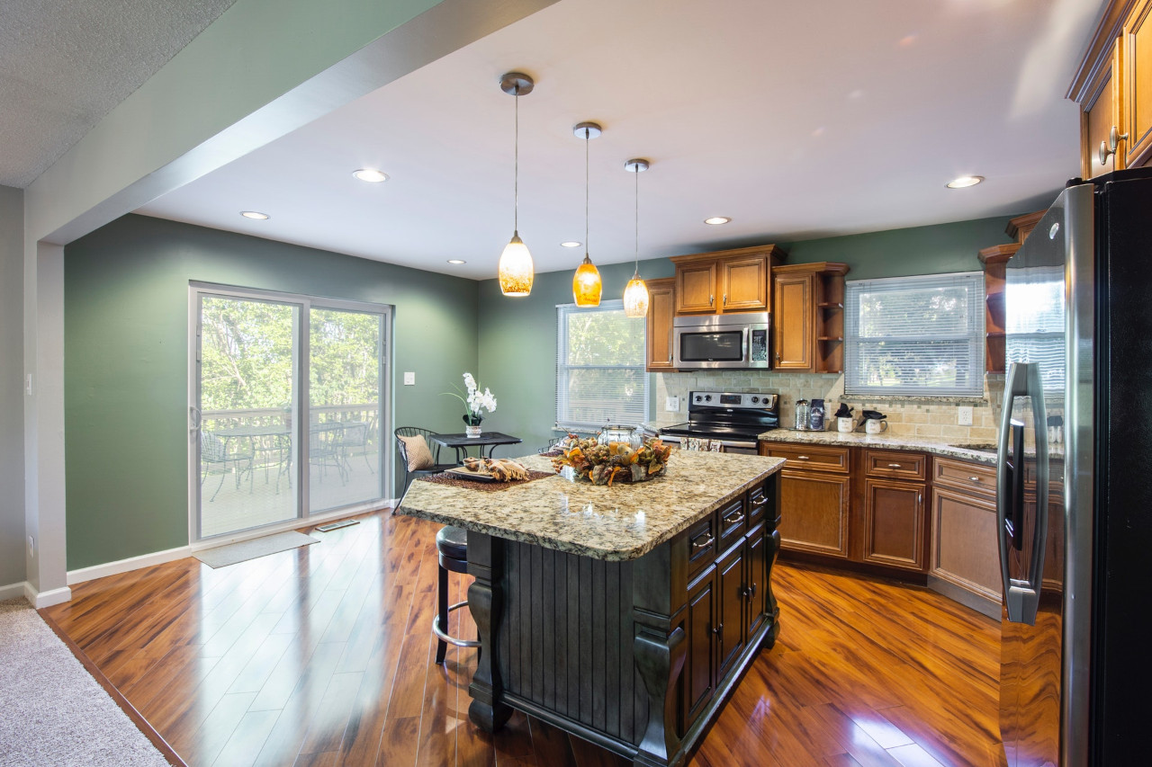 Perfect starter home for a young family. New neighborhood located near an elementary school. Open floor plan with custom features that will delight anyone. Kitchen/dining area looks out onto custom covered deck. Newly refinished hardwood floors in kitchen and plush carpeting throughout bedrooms. Stainless steel appliances and air conditioning.